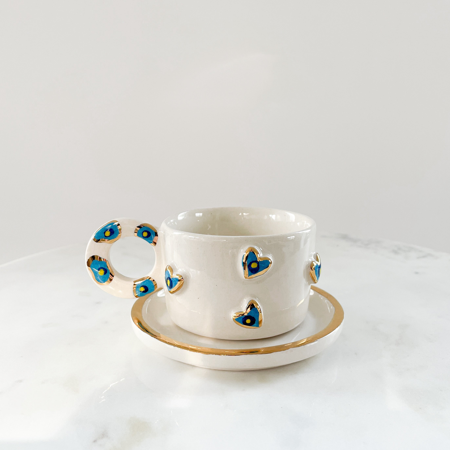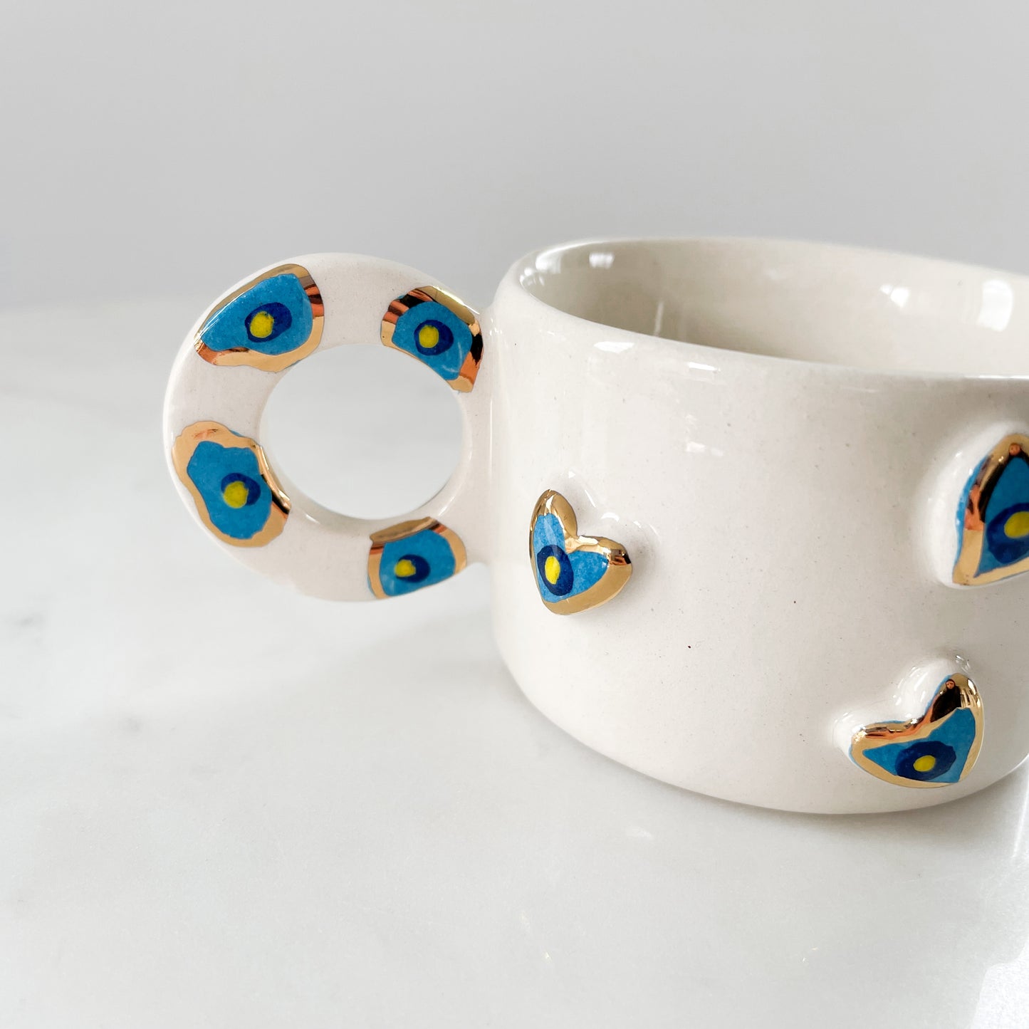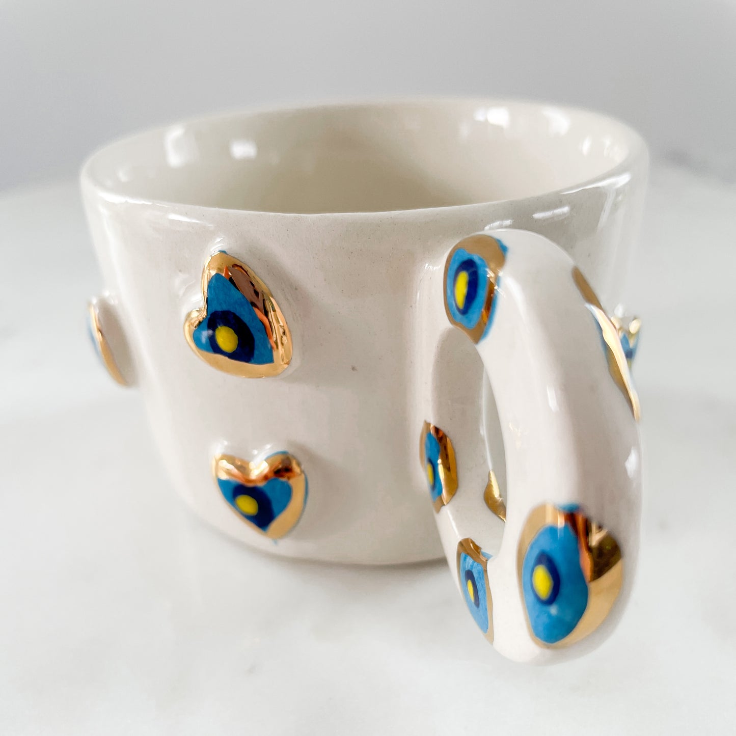 - Die Nazar Hearts Tasse ist handgefertigt aus Keramik und mit echtem 24 Karat Gold verziert