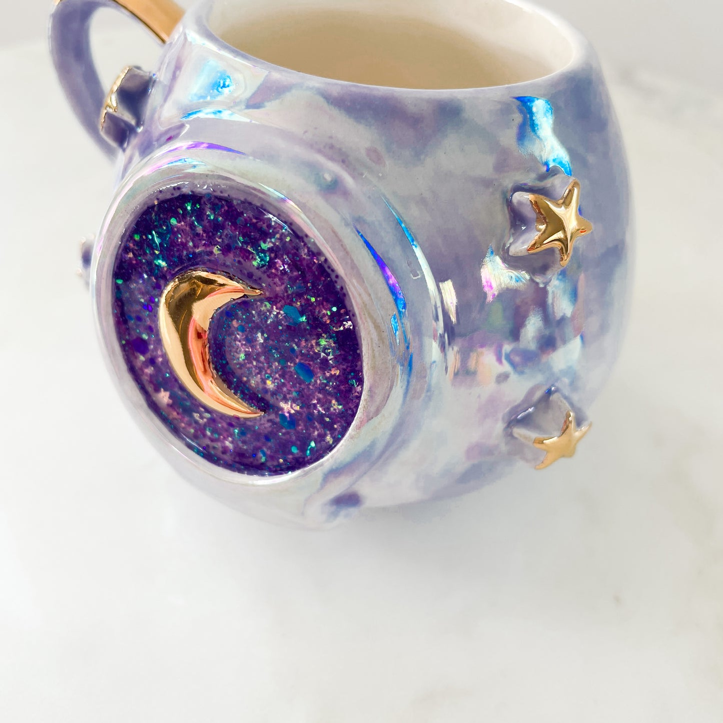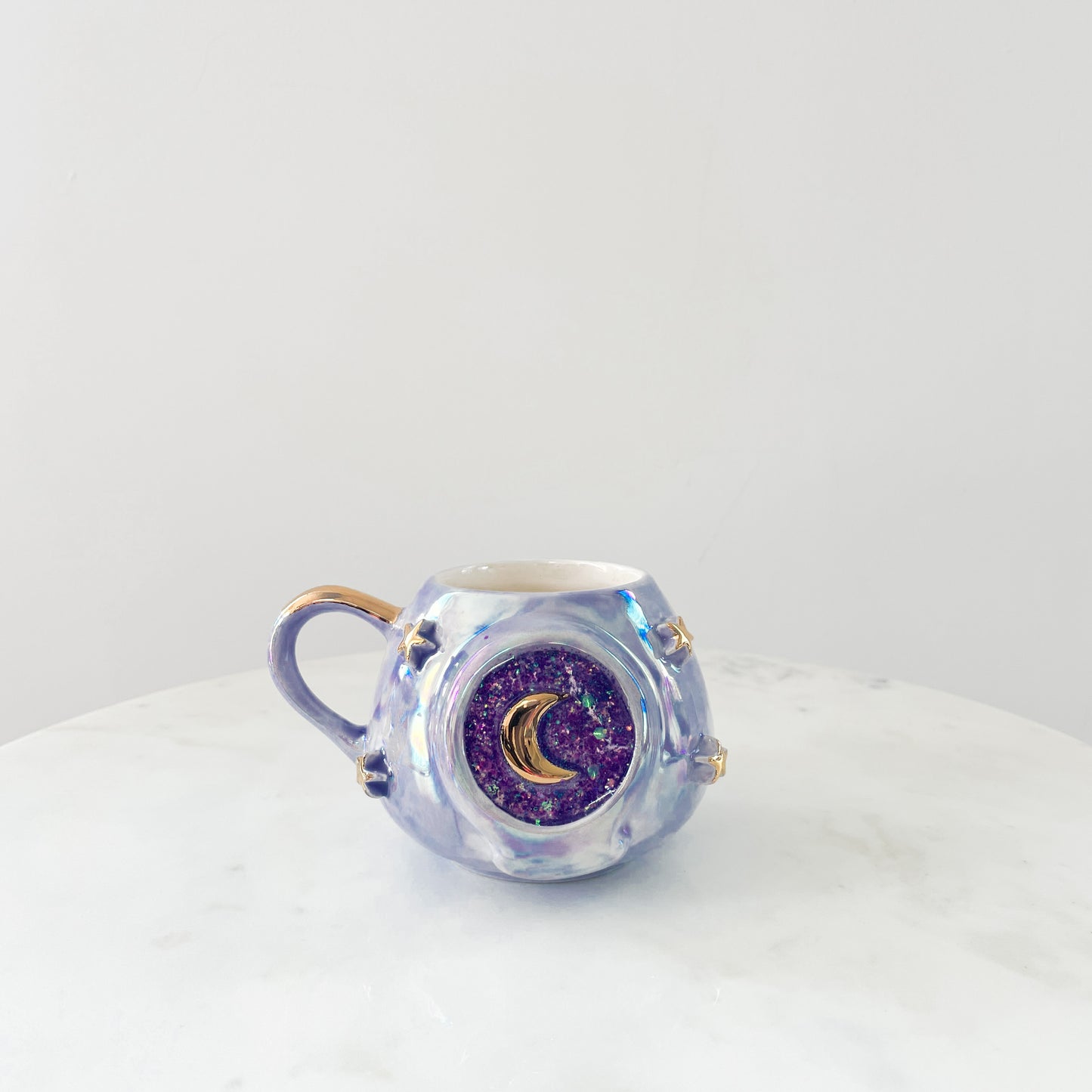 - Magic Moon Lilac mug is ceramic handmade and decorated with real 24k gold