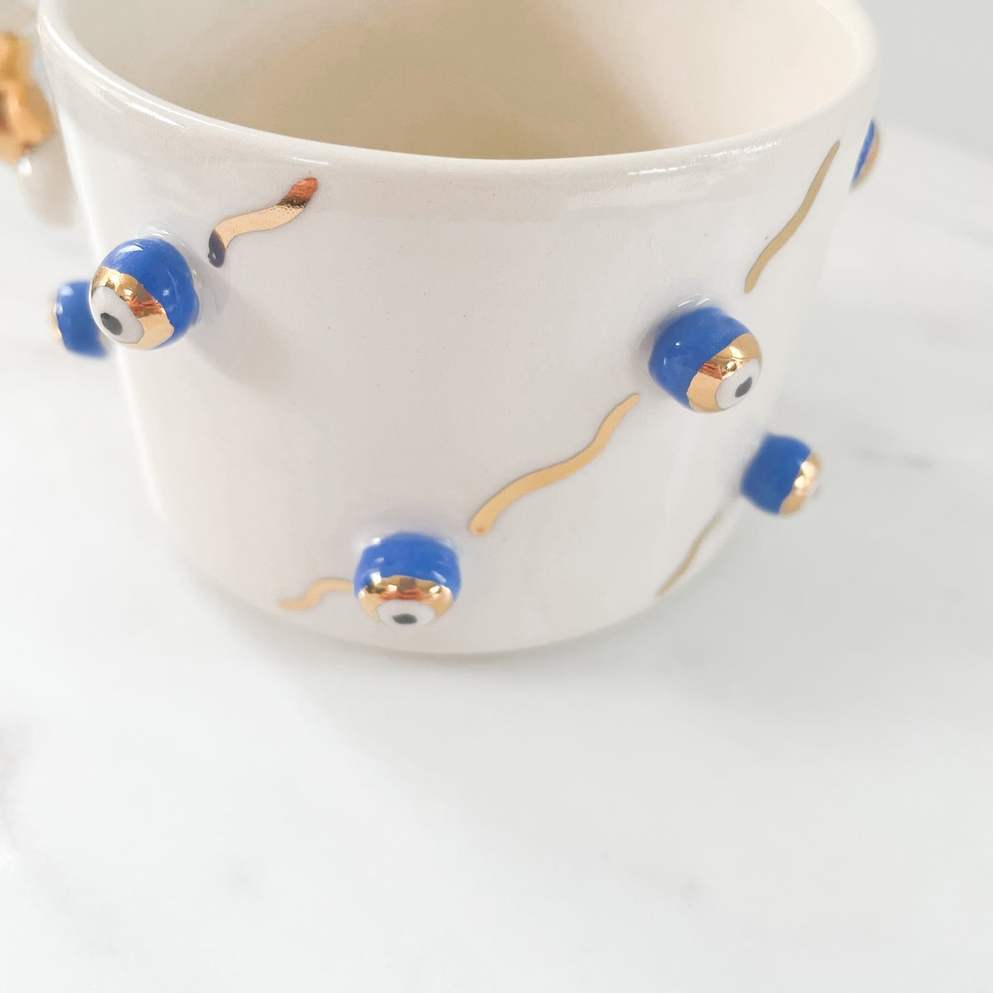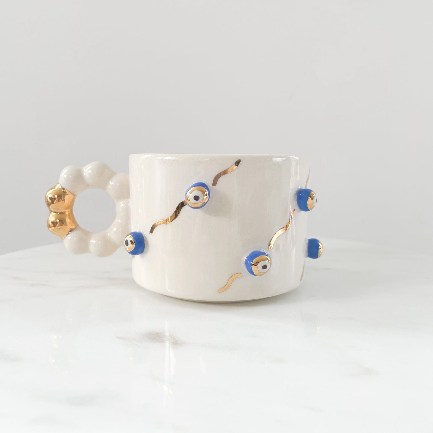 - Mini Nazar Balls mug is ceramic handmade and decorated with real 24k gold