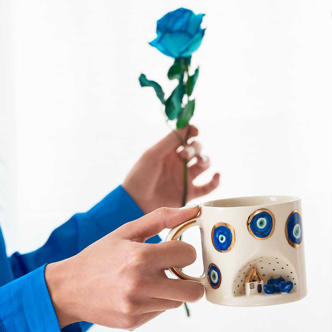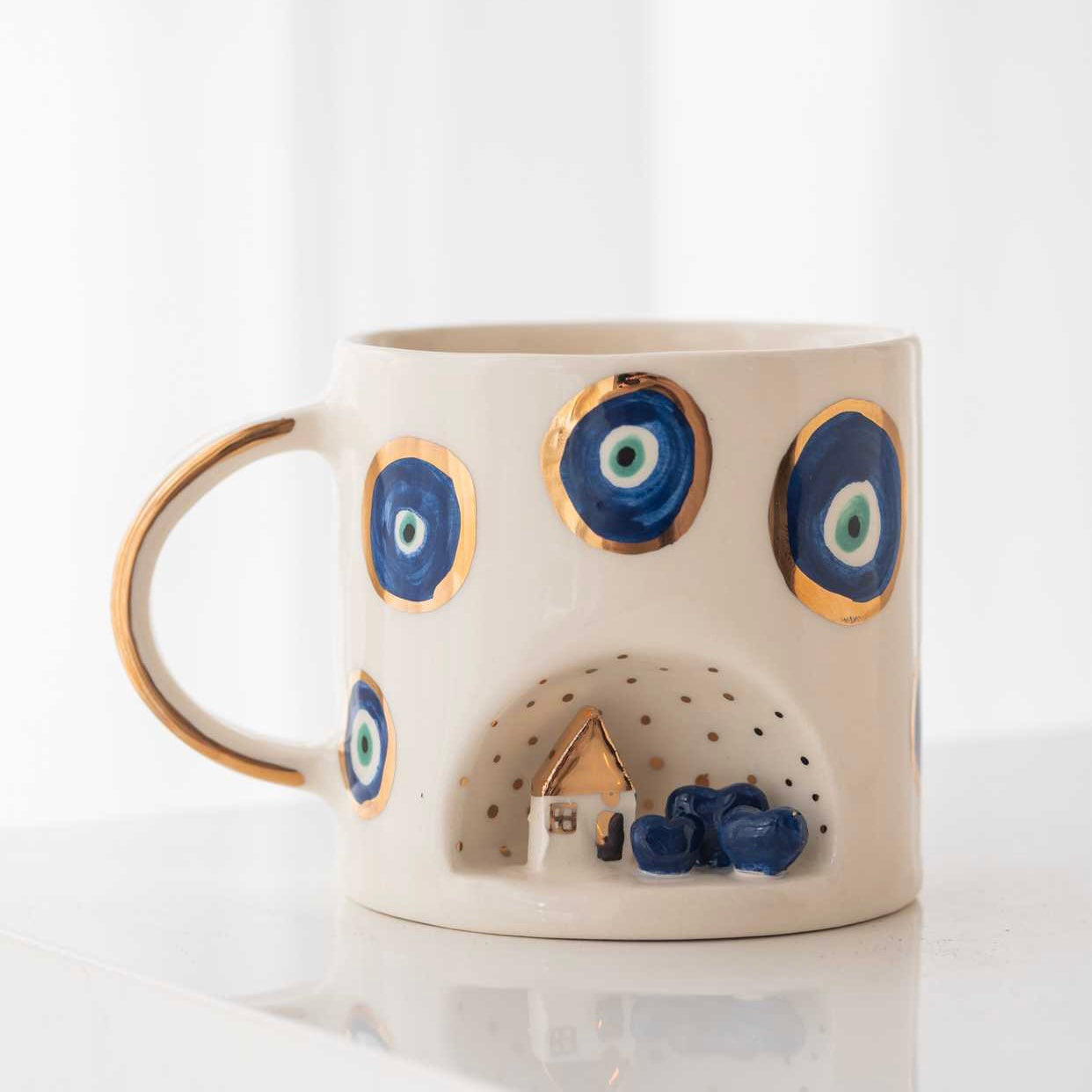 - Home Hearts Nazar mug is ceramic handmade and decorated with real 24k gold