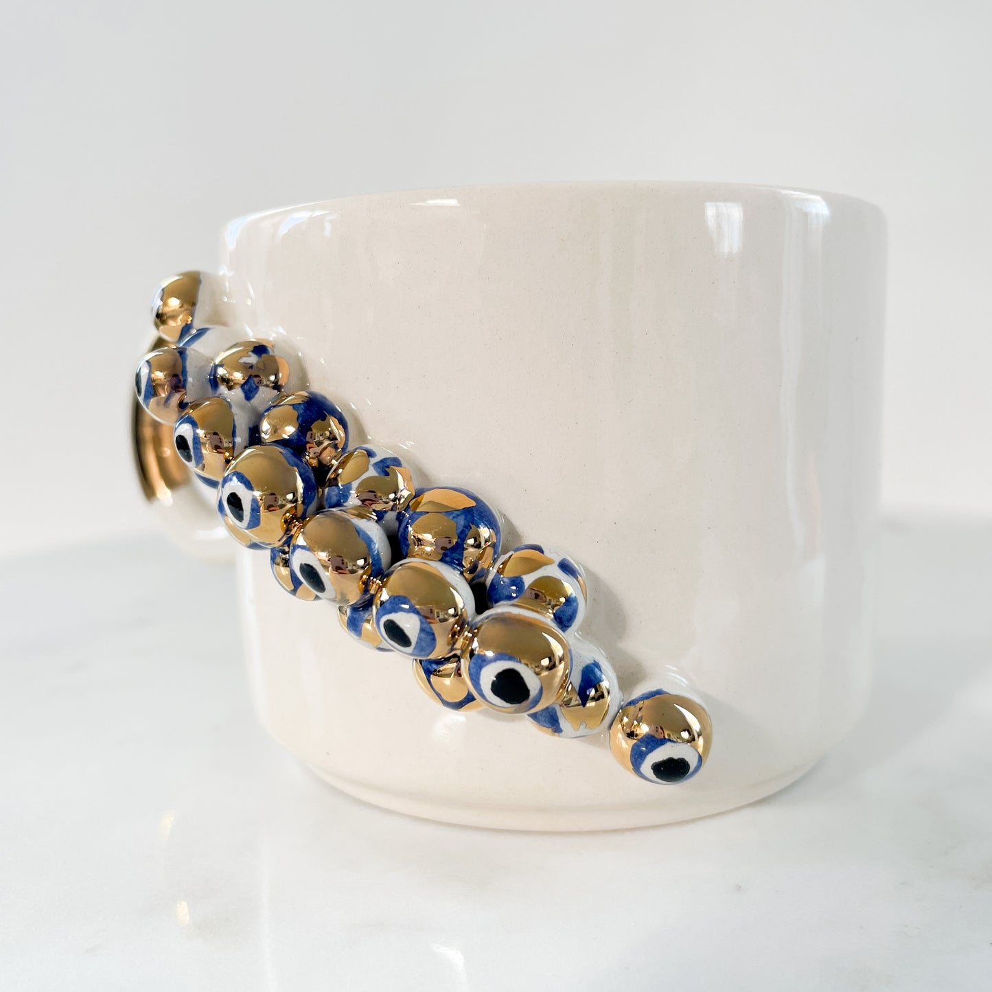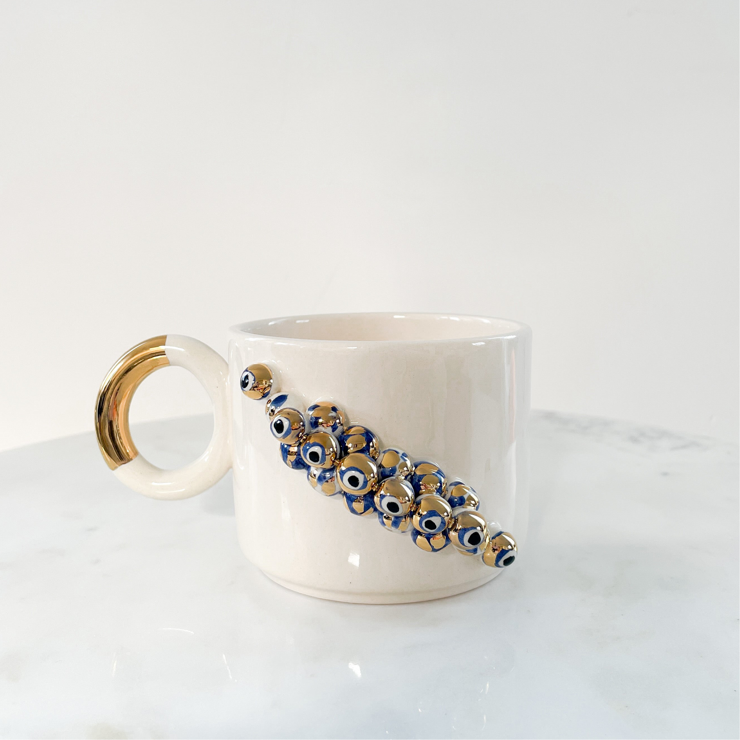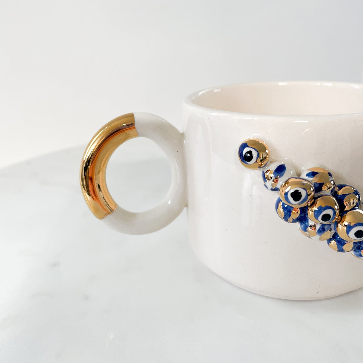 - Pearl Eye mug is ceramic handmade and decorated with real 24k gold
